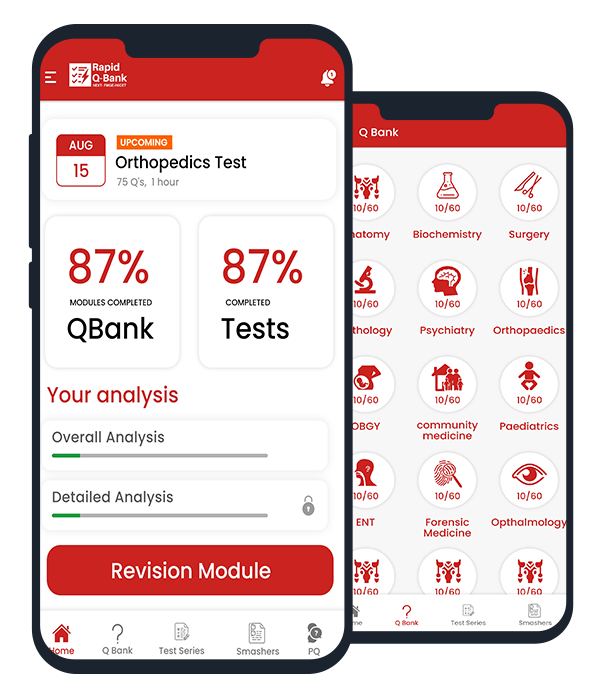 You can bookmark the MCQ while appearing for the Q bank for later revision on the Q bank screen by clicking on Bookmark Option. Bookmarks can be accessed on the Home screen or by clicking on the Bookmark Option.